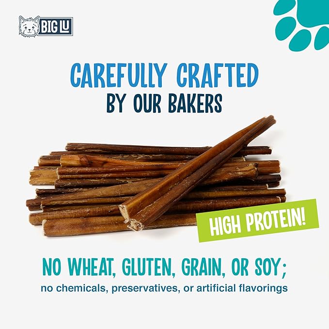 Big Lu - 12” Regular Bully Sticks, 12 Count, 100% Grass-Fed Beef Chews, Fully Digestible, Long-Lasting Treats for Aggressive Chewers, Natural Single-Ingredient Chews for Puppies and Small Dogs -