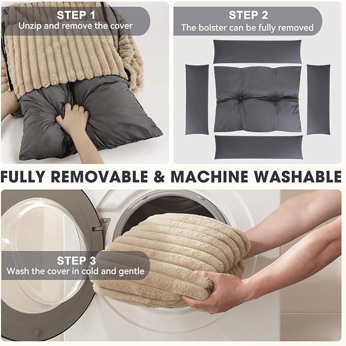 Dog Beds for Small Dogs, Washable Orthopedic Dog Bed with Removable Cover, Rectangle Soft Calming Sleeping Puppy Bed Durable Pet Cuddler with Anti-Slip Bottom, 20"x19"x6" Beige -