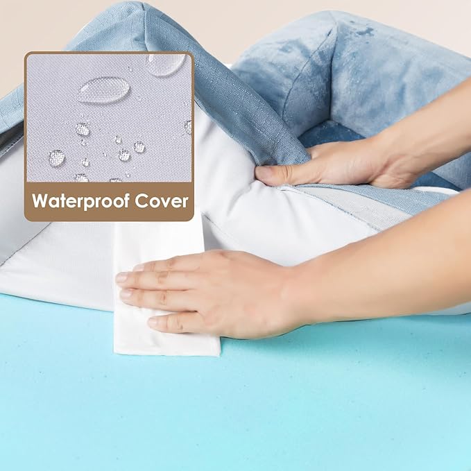 EHEYCIGA Orthopedic Dog Beds for Extra Large Dogs, Waterproof Memory Foam XL Dog Bed with Sides, Non-Slip Bottom and Egg-Crate Foam Big Pet Bed with Washable Removable Cover, Washed Blue -