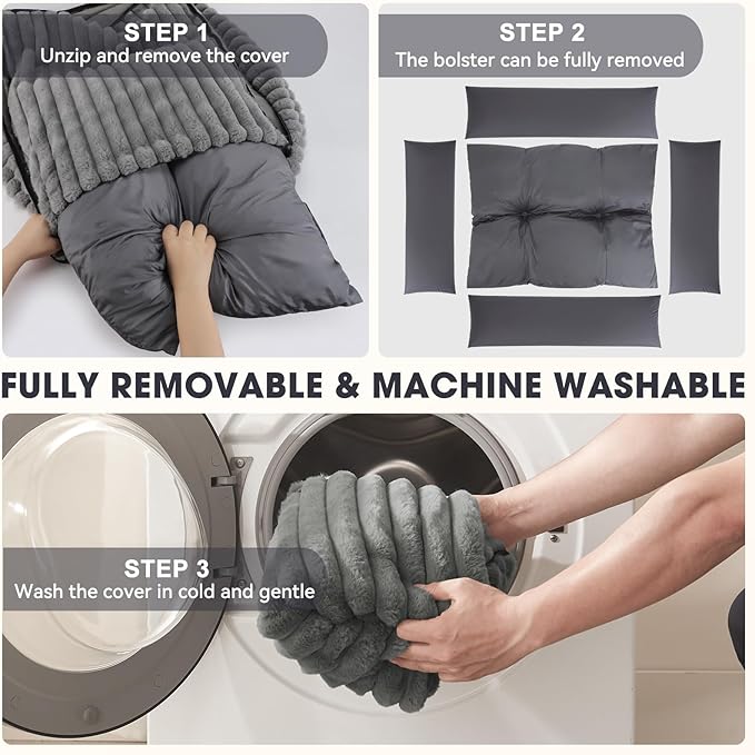 Dog Beds for Small Dogs, Washable Orthopedic Dog Bed with Removable Cover, Rectangle Soft Calming Sleeping Puppy Bed Durable Pet Cuddler with Anti-Slip Bottom, 20"x19"x6" Grey -