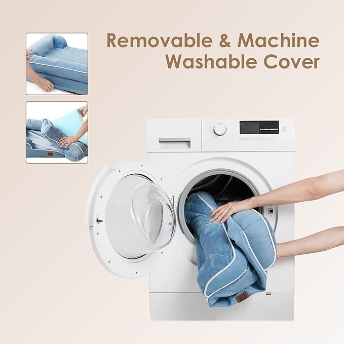 EHEYCIGA Orthopedic Dog Beds for Extra Large Dogs, Waterproof Memory Foam XXL Dog Bed with Sides, Non-Slip Bottom and Egg-Crate Foam Big Pet Couch Bed with Washable Removable Cover, Washed Blue -