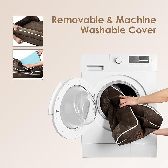EHEYCIGA Orthopedic XL Dog Beds, Waterproof Memory Foam Dog Bed for Extra Large Dogs, Non-Slip Bottom and Egg-Crate Foam Big Pet Couch Bed with Washable Removable Cover, Brown -