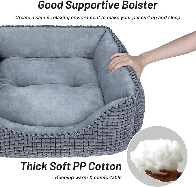 MIXJOY Dog Bed for Large Medium Small Dogs, Rectangle Washable Sleeping Orthopedic Pet Sofa Bed, Soft Calming Cat/Puppy Beds for Indoor Cats, Anti-Slip Bottom with Multiple Size (20'', Grey) -