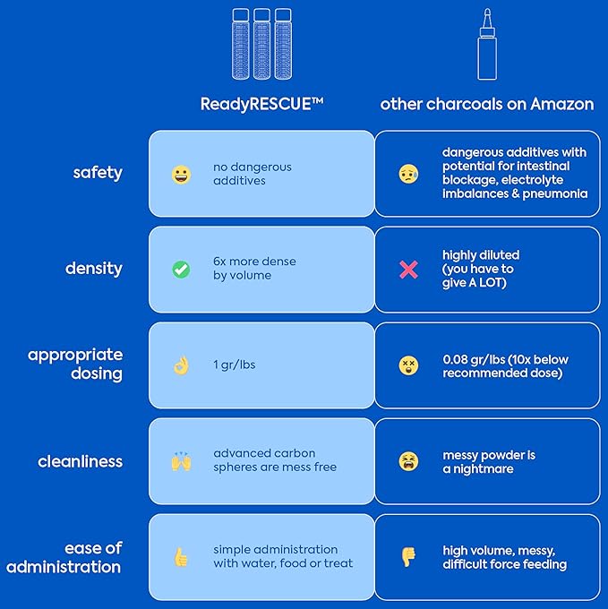 ReadyRESCUE - Dog First Aid Kit Essential - Activated Charcoal Detox for Dogs, Cats, Pets - Animal First Aid Kit - Dog Medical Emergency Kit - Dog Travel Essentials - 30g (3 Vials of 30g) -