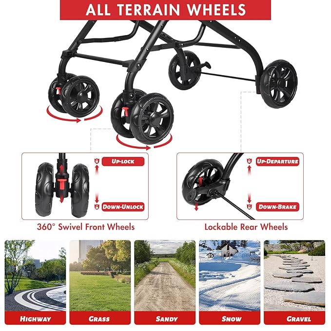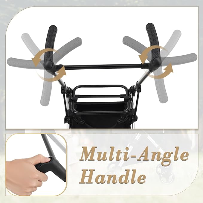 X-5 Luxury Pet Stroller for Medium Dog Under 55lbs or 2 Small Dogs & Cats, One-Touch Folding, Adjustable Handle, Detachable Carrier and Inflatable Wheels (Black & Net Wall) -