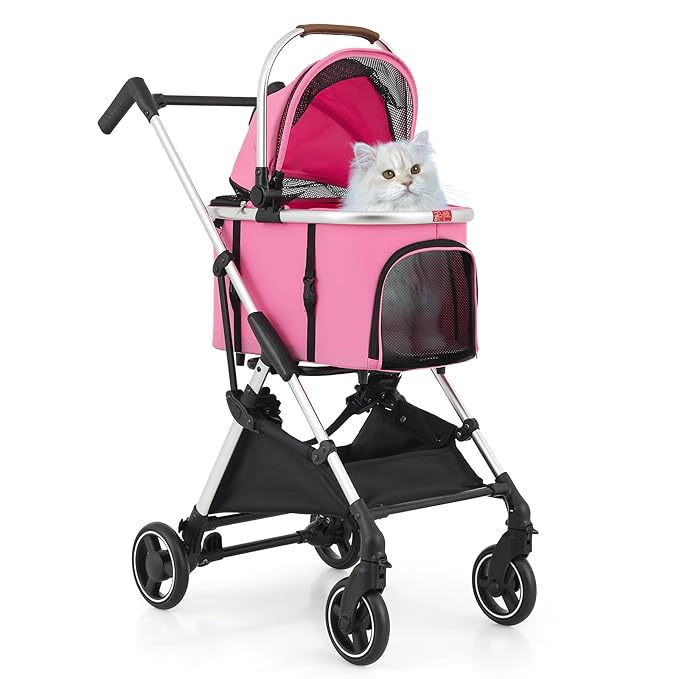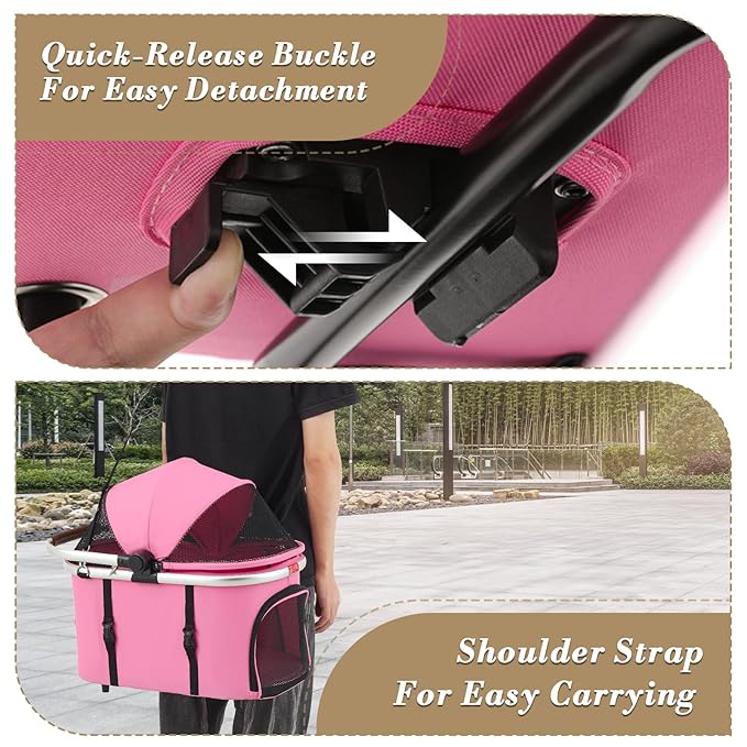 Athena collection Dog Stroller for Small/Medium Dogs,Foldable Pet Stroller with Detachable Carrier,Lightweight Cat Stroller up to 33lbs(Pink) -