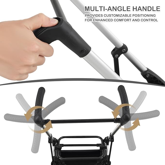 X-5 Luxury Pet Stroller for Medium Dog Under 55lbs or 2 Small Dogs & Cats, One-Touch Folding, Adjustable Handle and Detachable Carrier (Grey) -