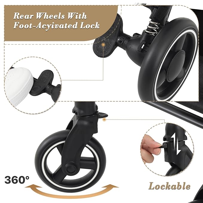 JK Pawadore 4 Wheels Pet Stroller Best Lightweight Foldable Portable Secure Easy Lock NO-Zip 180 ̊ Canopy Sun Shades Waterproof for Small/Medium Dogs 33lbs with Large Storage Basket (Khaki) -