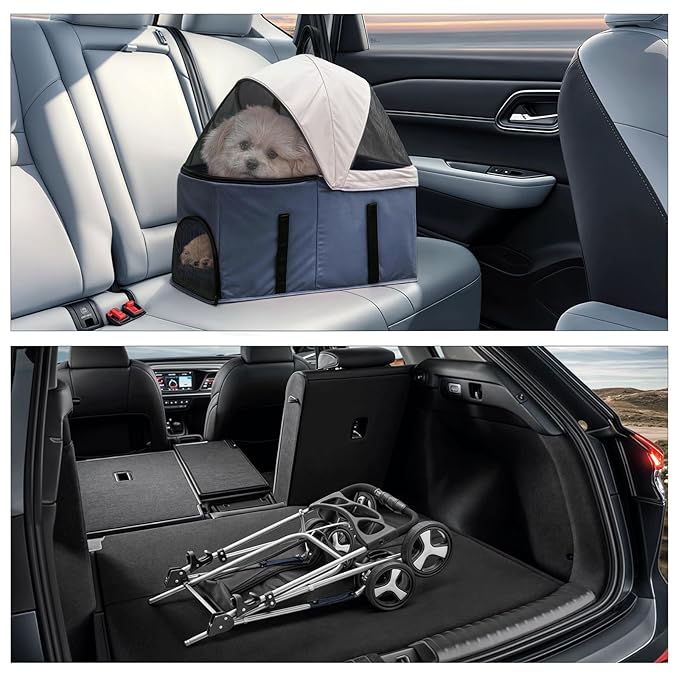 Athena collection Dog Stroller for Small/Medium Dogs,Foldable Pet Stroller with Detachable Carrier,Lightweight Cat Stroller up to 33lbs(Navy Blue) -