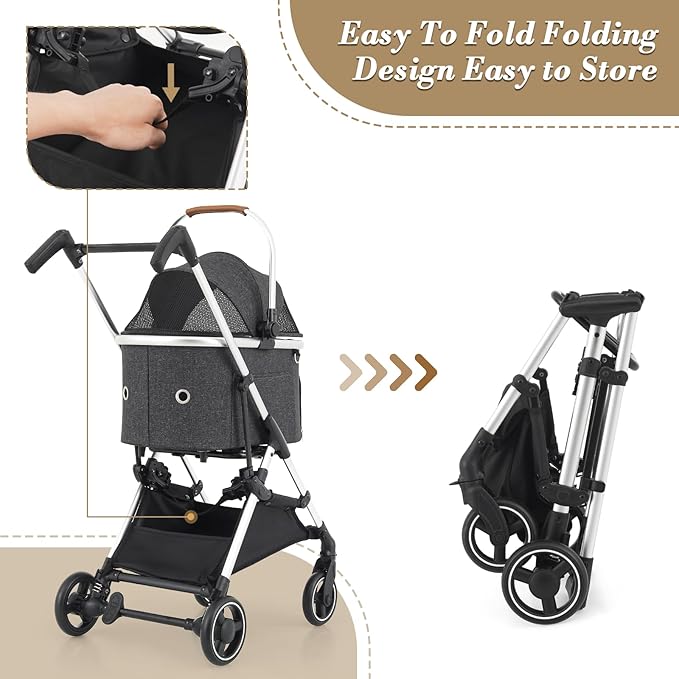 Athena collection Dog Stroller for Small/Medium Dogs,Foldable Pet Stroller with Detachable Carrier,Lightweight Cat Stroller up to 33lbs(Dark Gray) -