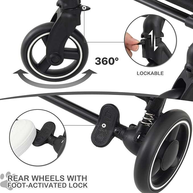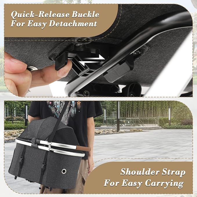 MoNiBloom Pet Stroller for Small/Medium Dogs w/Detachable Carrier & Lightweight Aluminum Frame, Folding Jogging Travel Stroller, Dark Gray -