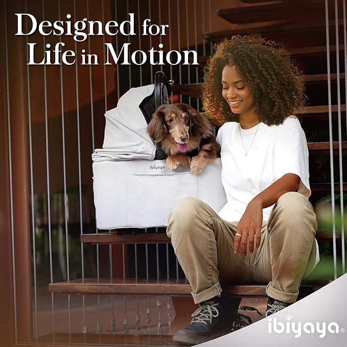 ibiyaya Tinker Pet Stroller for Small Dogs and Cats – 3-in-1 Pet Carrier, Dual-Opening Canopy, No-Flat Wheels, Vegan Leather Handle, Large Storage Basket (Silver Gray) -