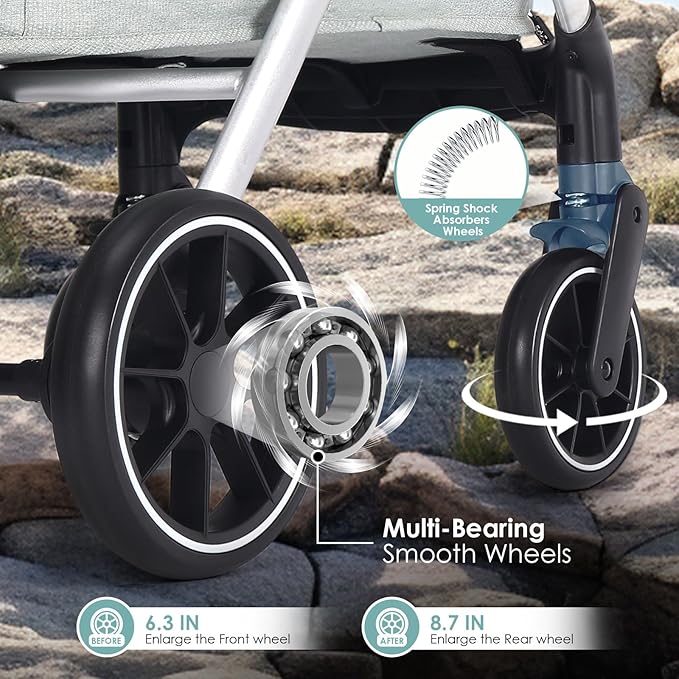 X6 Luxury Pet Stroller for Medium Dogs up to 66 lbs, One-Second Fold Design, 180° Canopy, 4-Wheel Shock Absorption (Green) -