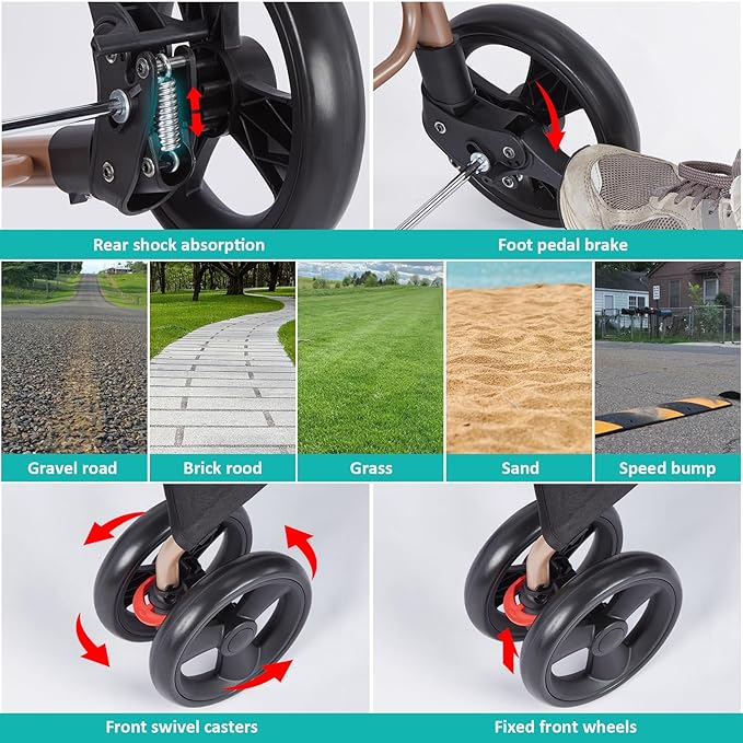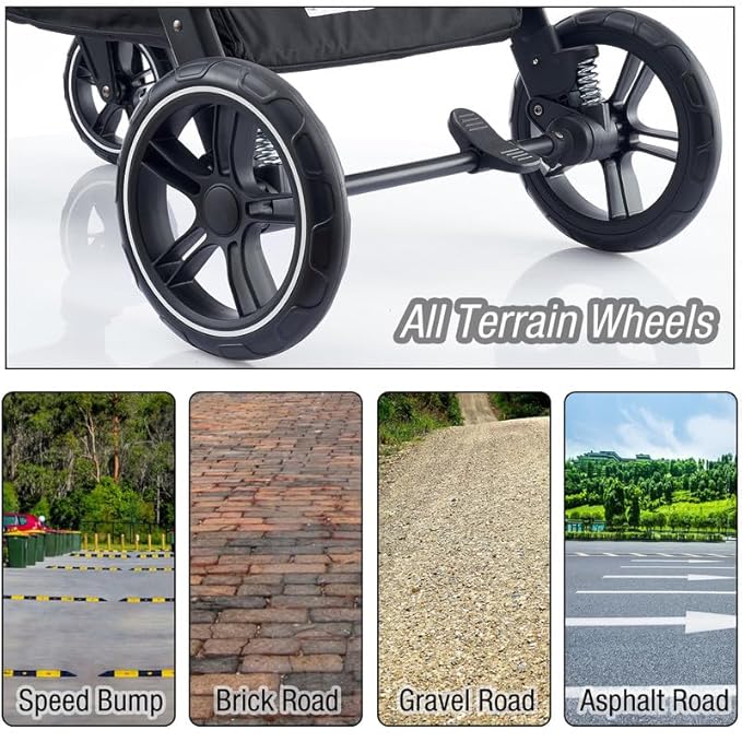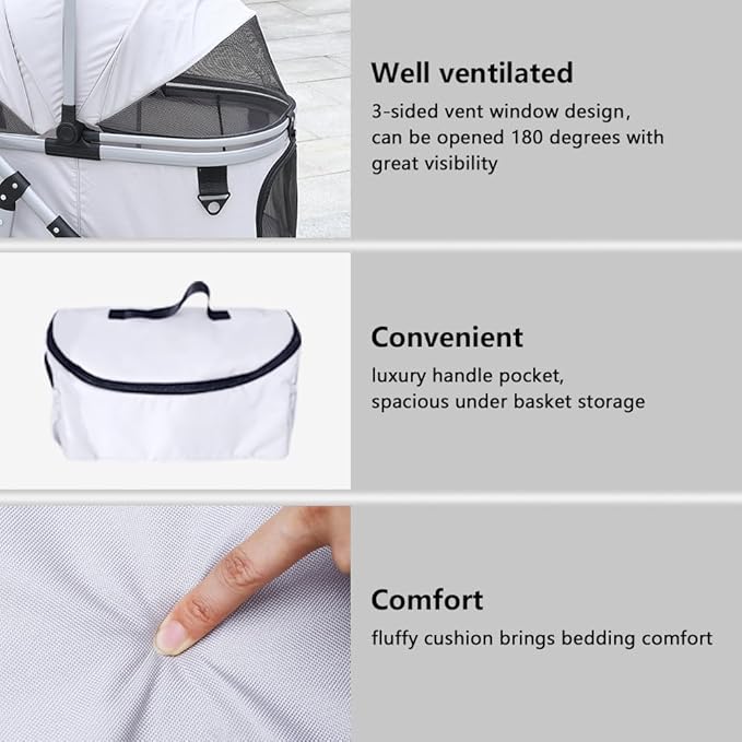 Dog Cat Stroller, Foldable 4 Wheels Dog Stroller for Small Medium Dogs 20 lbs,Pet Strollers for Large Dogs 50lbs, Stable Anti-Shock Detachble Carrier,with 360°Swiveling Front Wheel forTravel -