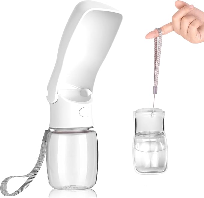 Portable Dog Water Bottle - Foldable Dog Water Dispenser | Leak Proof & Food Grade Plastic Travel | Pet Water Bottle for Cat Outdoor Walking Hiking Travel(US) (White, 12oz) -