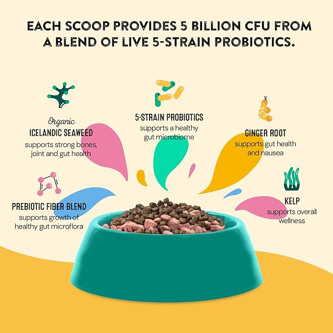 5-in-1 Dog Probiotic Powder – 100% Natural Gut Health Support with Prebiotics, Postbiotics & Enzymes – Crafted by Dog Nutritionist Kayla Kowalski, Made in USA – 30 Scoops -