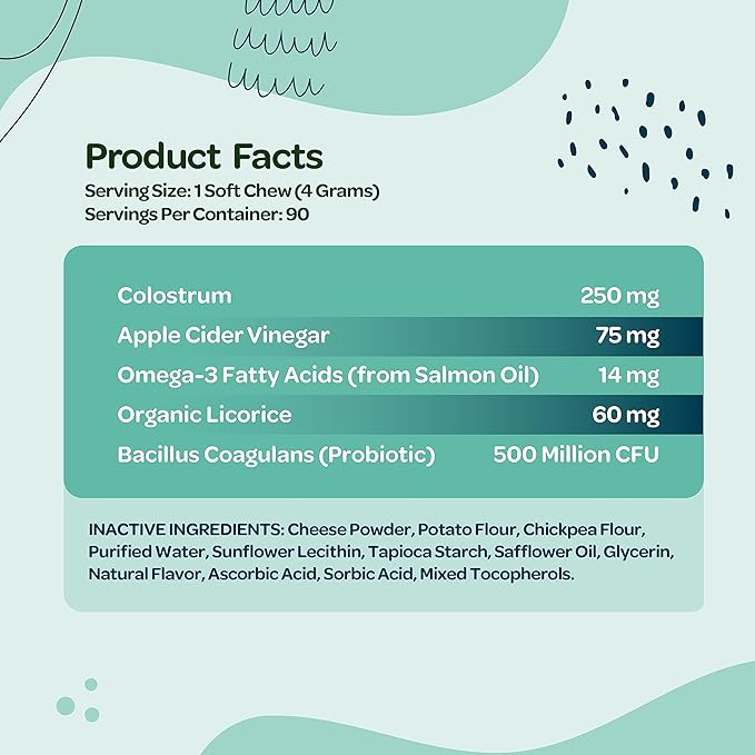 Immunity Boosting Dog Allergy Chews | Delicious and Soothing Hot Spot & Dog Itch Relief Chew for Seasonal Allergy Relief with Probiotics ACV Alaskan Salmon Oil & Colostrum for Dogs | 90 Chews -