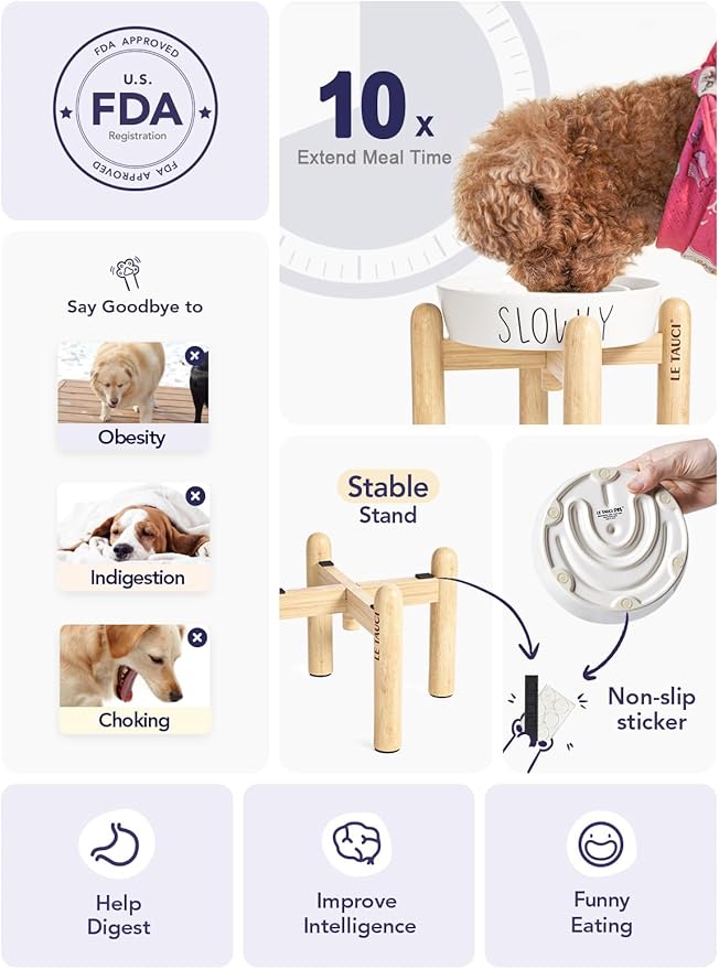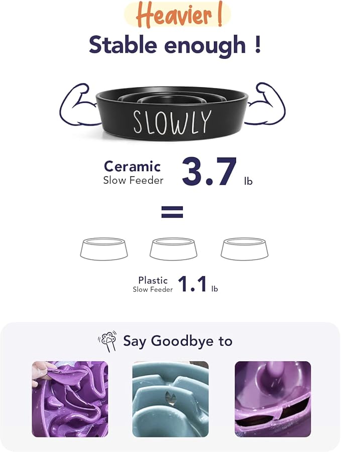 LE TAUCI PET Dog Slow Feeder Bowl Ceramic,3 Cups Puzzle Food Bowl for Small Medium Large Breed, Dog Bowls to Slow Down Eating, Maze -
