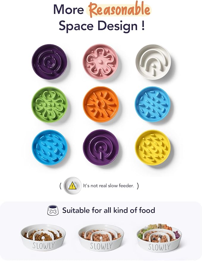 Ceramic Slow Feeder Dog Bowls, 0.6 Cup Slow Feeder for Small Dogs and Cats, Puzzle Maze Bowl, Prevents Choking, 6in, White