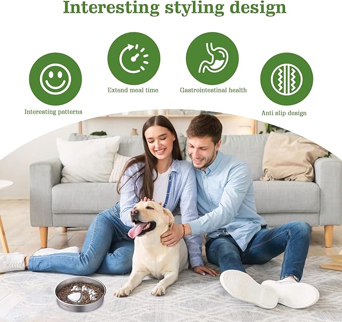 2-Pack Slow Feeder Dog Bowls – Stainless Steel Metal Bowls with Double-Sided Design, 5 Cups Large Capacity for Dry, Wet, Raw Food, Slow Feeding for All Dog Sizes, Easy to Clean, Non-Slip -