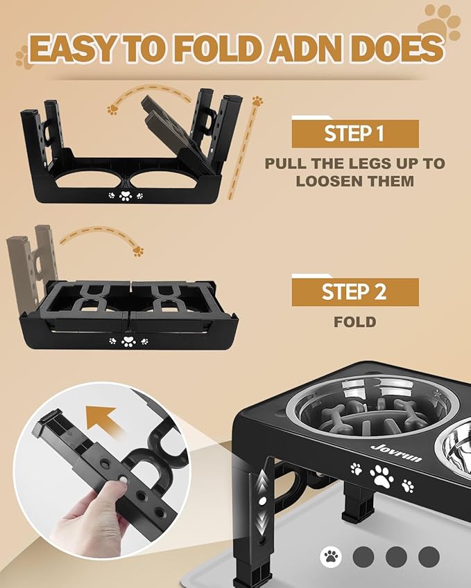 4-in-1 Elevated Slow Feeder Dog Bowls, 4 Height Adjustable Mess Proof Raised Dog Bowl Stand with No Spill Water Bowl, Stainless Steel Doggy Food Dish & Slow Feeder for Large Medium Small Pets -