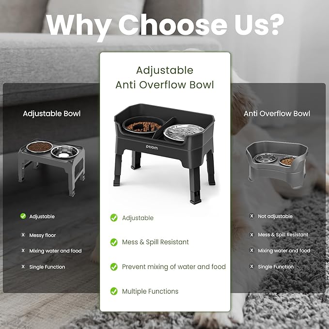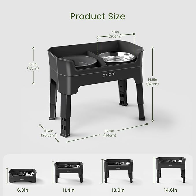 Elevated Dog Bowls, Dog Feeder with 2 Stainless Steel Dishes &1 Slow Feeder Bowl, 5 Heights Adjustable Raised Stand for Medium Large, Food Dishes with Non-Slip Feet -