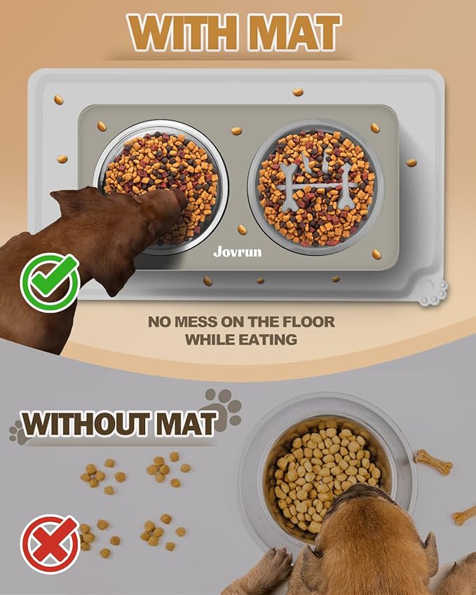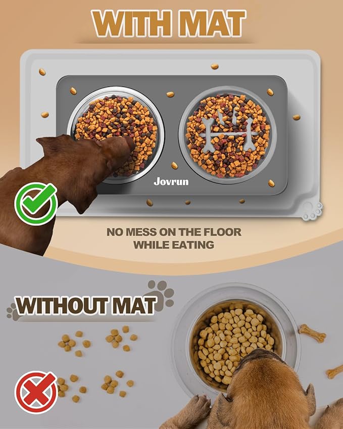 Neater Feeder Deluxe Mess Proof Dog Bowls Elevated for Large Breeds – Made in USA – No Spill Raised Slow Feeder Elevated Dog Bowl Stand, Stainless Steel Food and Water Bowl Set, Grey -