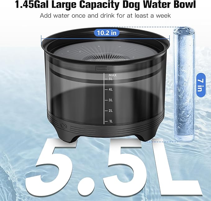 UPSKY 5.5L Dog Water Bowl,186oz Large Capacity No Spill Water Bowl for Dogs, Splash Proof Slow Water Feeder with Heightened Base, Anti-Slip Slow Drinking Pet Water Bowl for Messy Drinkers, B-Black -