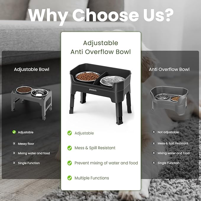 Elevated Dog Bowls, Dog Feeder with Stainless Steel Dishes & Slow Feeder Bowl, 5 Heights Adjustable Raised Stand for Medium Large, Food Dishes with Non-Slip Feet -