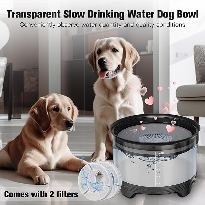 LumoLeaf No Spill Dog Water Bowl, 70oz Slow Feeder for Messy Drinkers, Keeps Long-Haired Dogs’ Mouth Fur Dry, Drip-Free Splash-Proof Design -