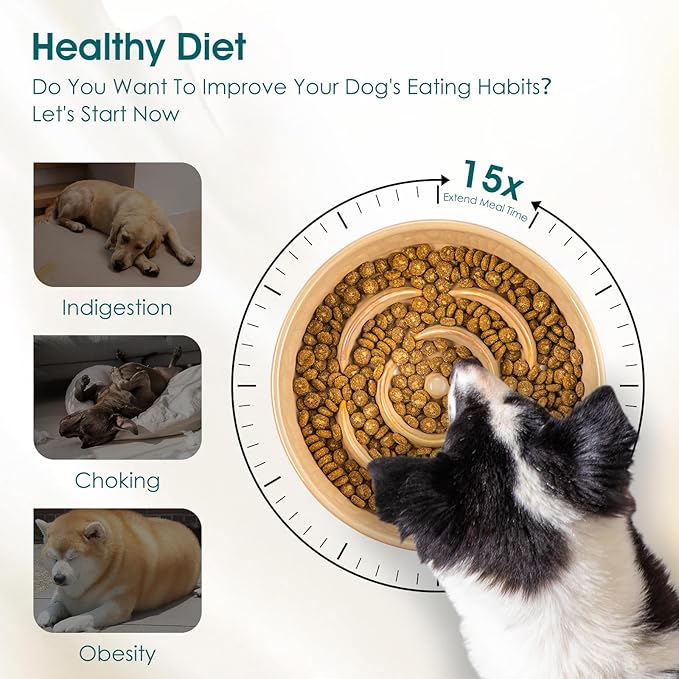 vancasso Slow Feeder Dog Bowl, 3 Cups Ceramic Slow Feeder for Large Breed, Puzzle Maze Dog Food Bowl for Fast Eater, Khaki -