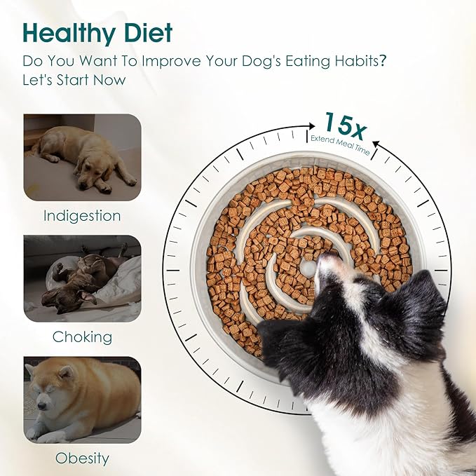 MateeyLife Slow Feeder Dog Bowls, Anti-Choking Puzzle Dog Food Bowls, Anti-Slip Interactive Feeding Slow Down Eating, Bloat Stop Maze Dishes for Medium Large Breeds Gray -