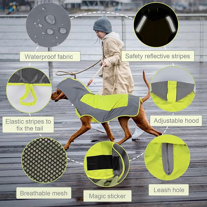 IECOii Dog Raincoats for Large Dogs,Waterproof Large Doggy Rain Jacket with Hood,Reflective Breathable Pet Rain Coat with Hood,Ideal for Adventures, Walking, Hunting in Dark,Yellow,XL -