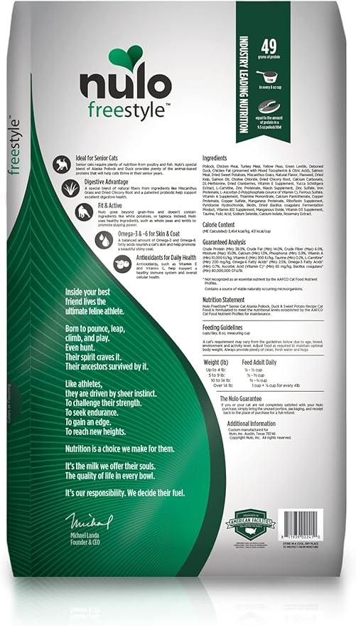 Nulo Freestyle High Protein Senior Cat Food, Alaska Pollock & Sweet Potato Recipe - Natural Grain-Free Dry Cat Food for Seniors with L-carnitine, Omega Fatty Acids, & Probiotics, 14 lb Bag Nulo Freestyle High Protein Senior Cat Food, Alaska Pollock & Sweet Potato Recipe - Natural Grain-Free Dry Cat Food for Seniors with L-carnitine, Omega Fatty Acids, & Probiotics, 14 lb Bag