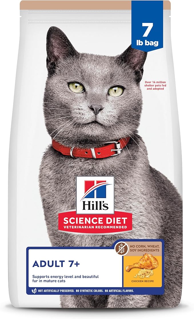 Hill's Science Diet Adult 7+, Senior Adult 7+ Premium Nutrition, Dry Cat Food, No Corn, Wheat, Soy Chicken & Brown Rice, 7 lb Bag Hill's Science Diet Adult 7+, Senior Adult 7+ Premium Nutrition, Dry Cat Food, No Corn, Wheat, Soy Chicken & Brown Rice, 7 lb Bag