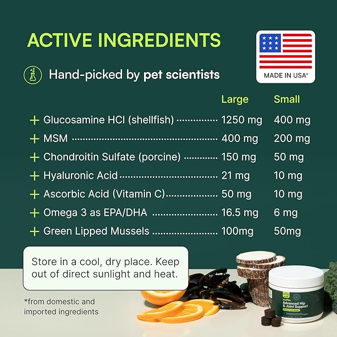 Wuffes Advanced Dog Hip and Joint Supplement with Glucosamine, Chondroitin, Omega 3, MSM, and Green Lipped Mussel, (Pack of 2, Small & Large Breed) -