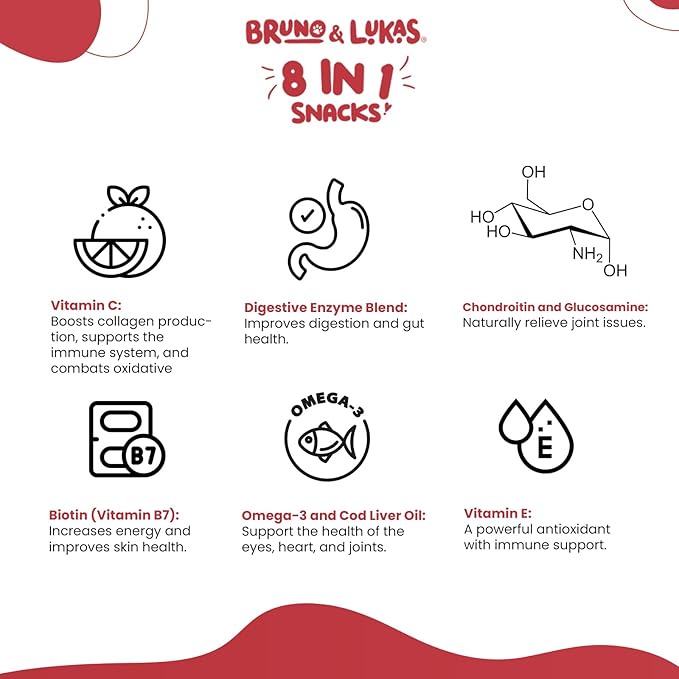 Multivitamin Treats for Dog Supplement 8 in 1 Vitamins Support Joint Digestion Antioxidant- Improves the Immune System Skin & Coat with Glucosamine for Dogs and Omega Fish Oil Salmon Flavor (90 Chews)