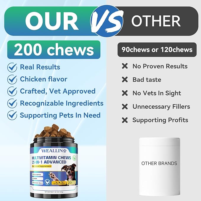 Dog Vitamins - 25-in-1 Dog Vitamins and Supplements Multivitamin with Glucosamine Probiotics Omega-3 Puppy Multivitamin Chewable for Coat, Heart, HIPS & Joints, Digestion & Immune System 200pcs -