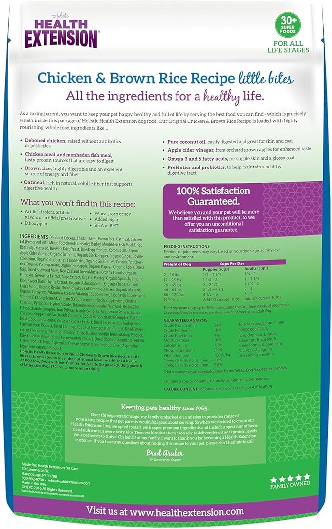 Health Extension Little Bites Dry Dog Food for Small Breeds, Chicken & Brown Rice Recipe, with Probiotics & Superfoods for Digestion & Coat Health, 1 lb Bag (Pack of 2) -