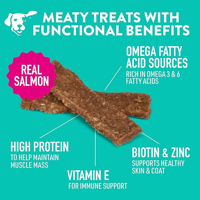 DOGSWELL Jerky Treats for Dogs, Skin and Coat Salmon Recipe 18 oz., 29235 -