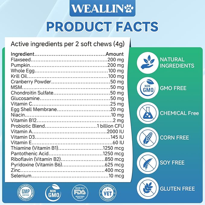 Cat Multivitamin - 500 Chews Crunchy & Creamy Cheese Core, Cat Vitamins + Taurine for 8-in-1 Support - Immune, Urinary, Heart, Skin & Coat, Eyes, Brain, Bone for Cats Kittens - Egg Yolk Flavor -