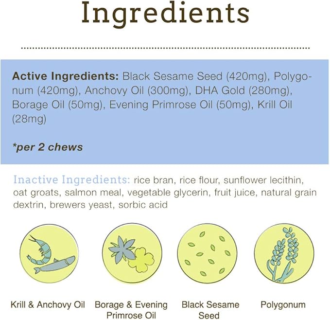 Omega Skin Health Chews for Dogs, Alaskan Salmon Oil, Omega-3 Fish Oil, Krill, Spirulina, Omega-3s, Healthy Skin & Coat, Itchy Skin, Dog Allergies, May Reduce Shedding (90 Count)