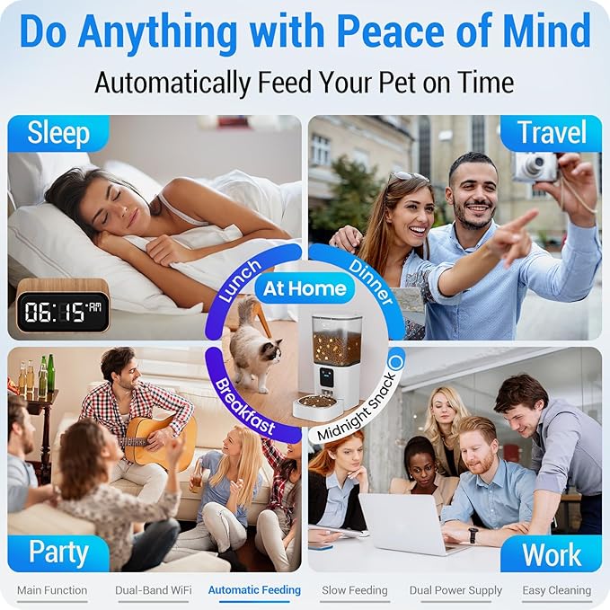Automatic Cat Feeder, 5G & 2.4G Wi-Fi Cat Food Dispenser with APP Control, 3L Timed Pet Feeder for Pet Dry Food, 1-10 Meals Per Day -
