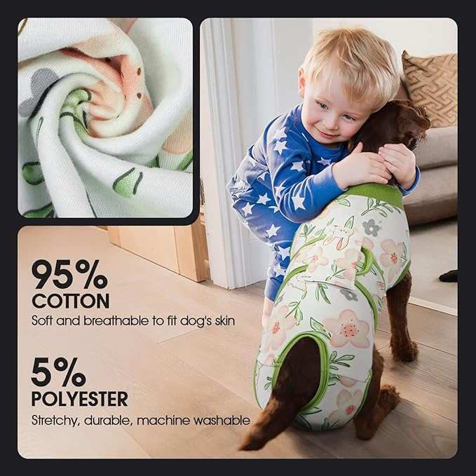 FUAMEY Dog Recovery Suit Male,Dogs Surgery Neuter Suits Puppy Spay Shirts for Female Protect Dog's Skin Anti Licking Abdominal Wounds Doggie Onesie Pet Bodysuit Alternative to Cone Rabbit Flower XXL -