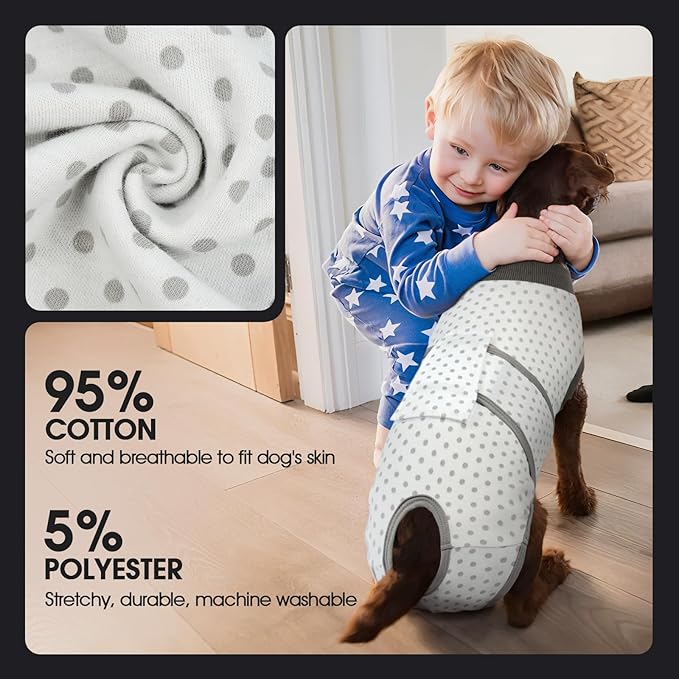 FUAMEY Dog Recovery Suit Male,Dogs Surgery Neuter Suits Puppy Spay Shirts for Female Protect Dog's Skin Anti Licking Abdominal Wounds Doggie Onesie Pet Bodysuit Alternative to Cone Polka Dot XXL