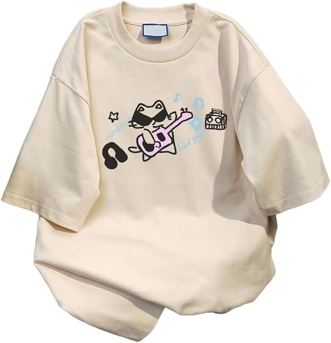 Harajuku Vintage Shirts for Women Cute Graffiti Cat Print T-Shirt Summer Oversized Graphic Tees Kawaii Clothes Y2K Tops -