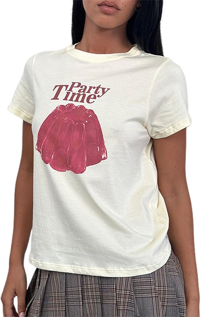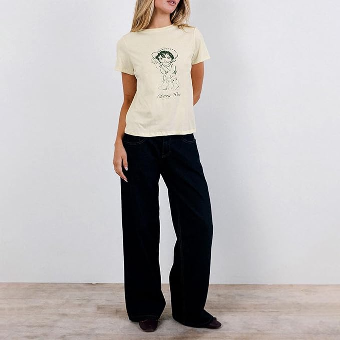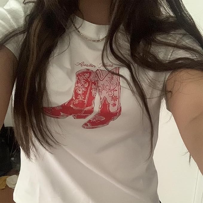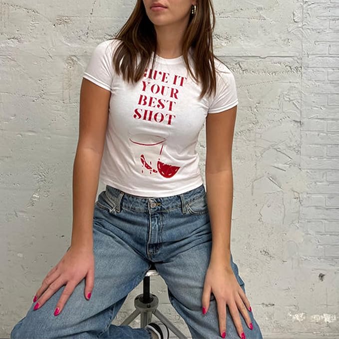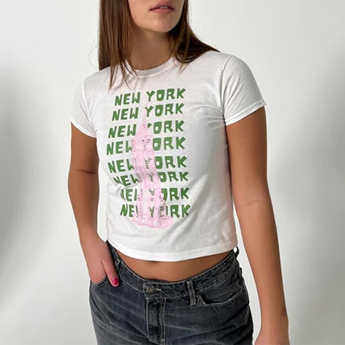 Y2k Womens Graphic Baby Tee Slim Fit Short Sleeve Crop Tops Funny Letter Animal Print Shirts 90s 2000s Streetwear