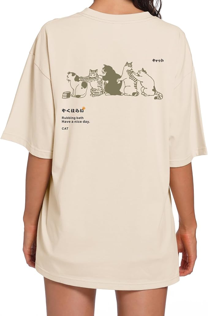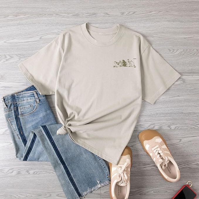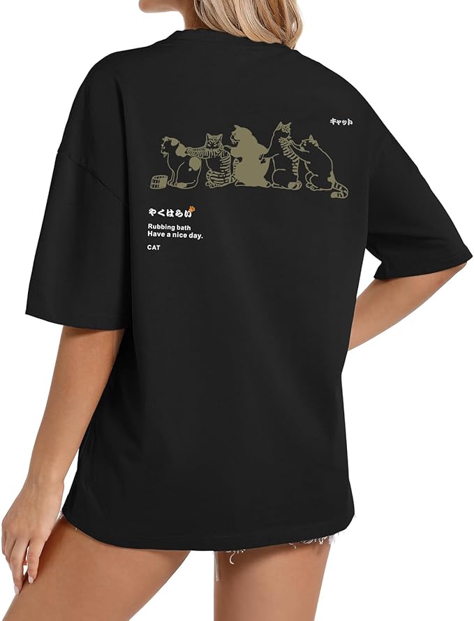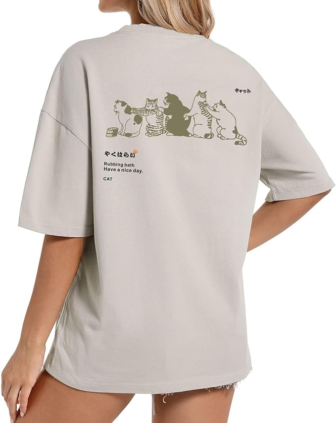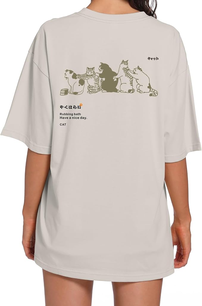 Oversized Cat Shirt Cute Graphic Tees for Women Y2k Funny Tshirts Baggy Aesthetic Shirts Cat Lover Gifts Kawaii Tops -