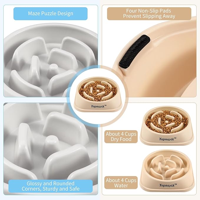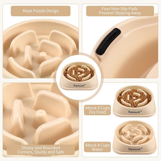 Slow Feeder Dog Bowls for Healthy Eating, Non-Slip and Anti-Choking Design, Reduces Bloating & Overeating for Medium Dogs and Cats, Easy to Clean -