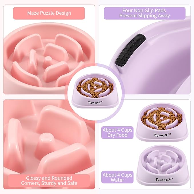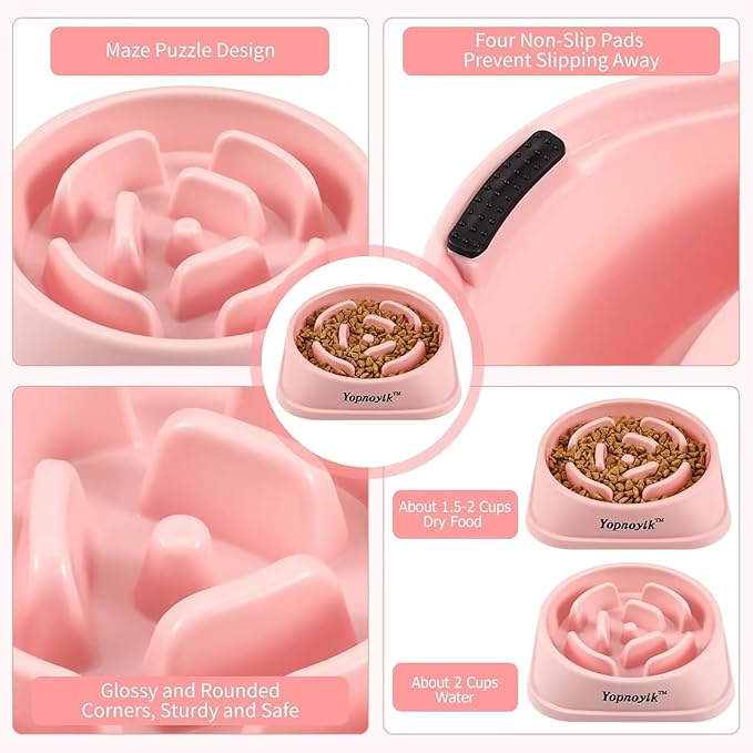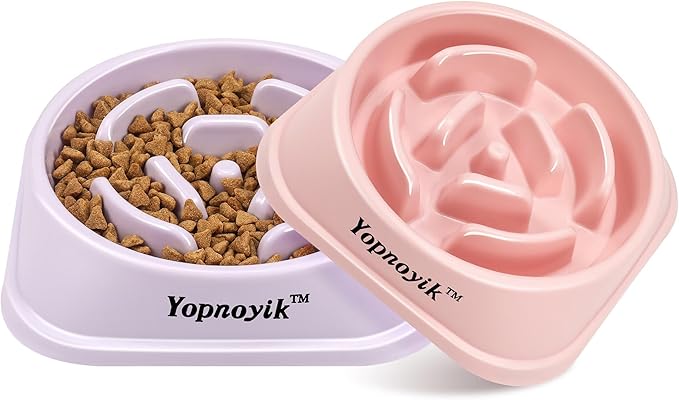 2 Pack Slow Feeder Dog Bowls for Healthy Eating, Non-Slip and Anti-Choking Design, Reduces Bloating & Overeating for Medium Dogs and Cats, Easy to Clean -